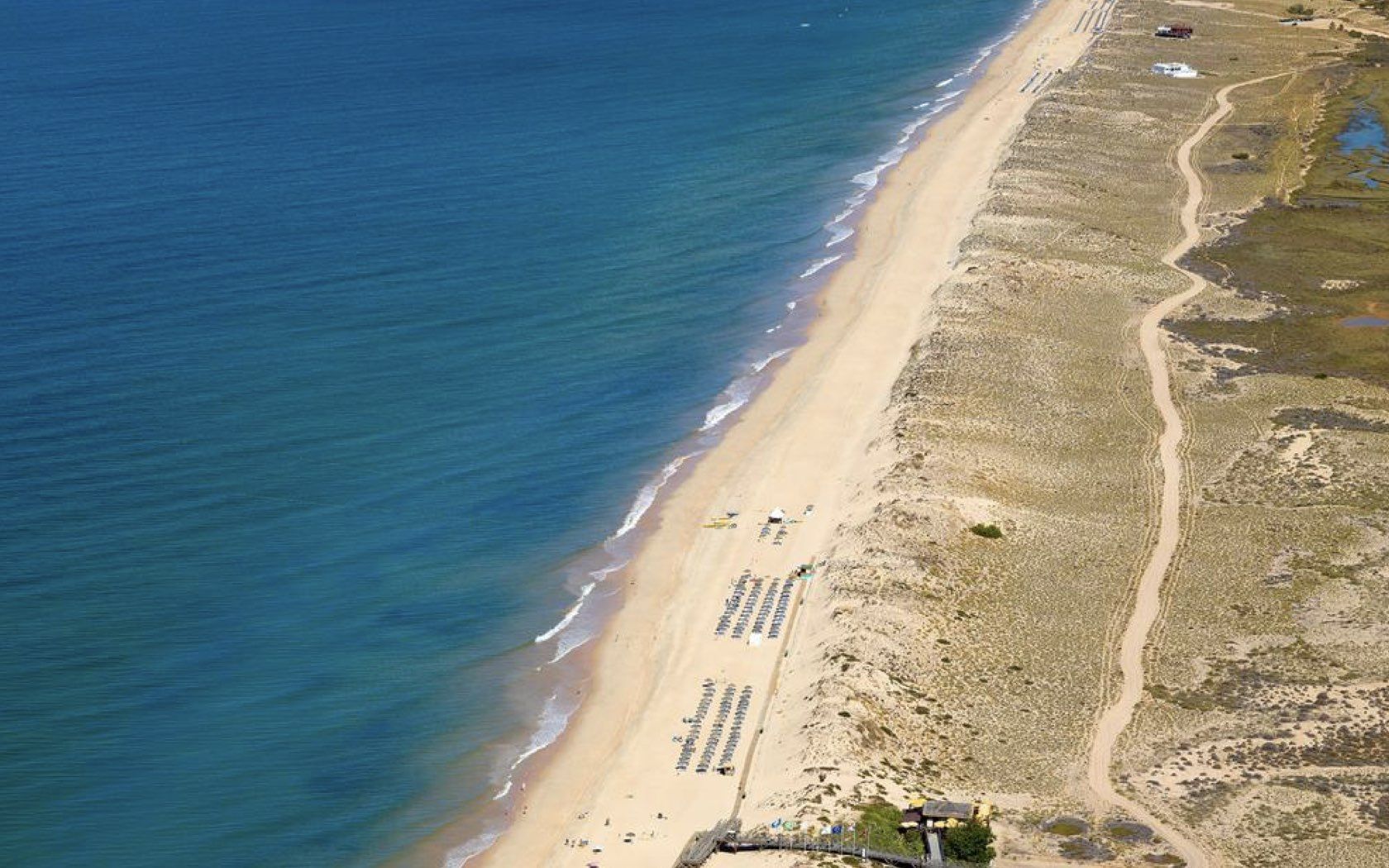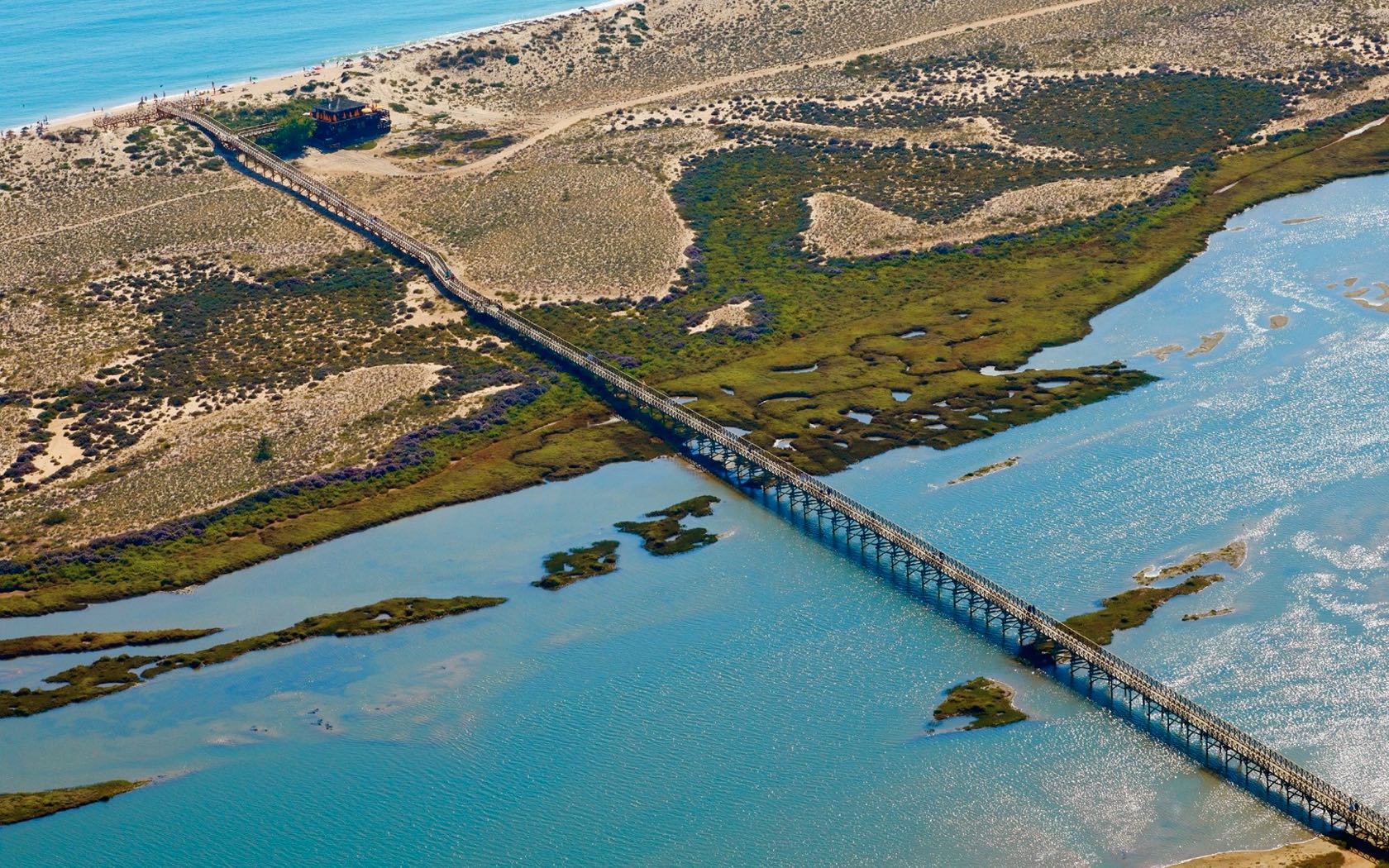 Ria Formosa - Aerial View - Quinta do Lago Beach with walking access through picturesque wooden bridge
