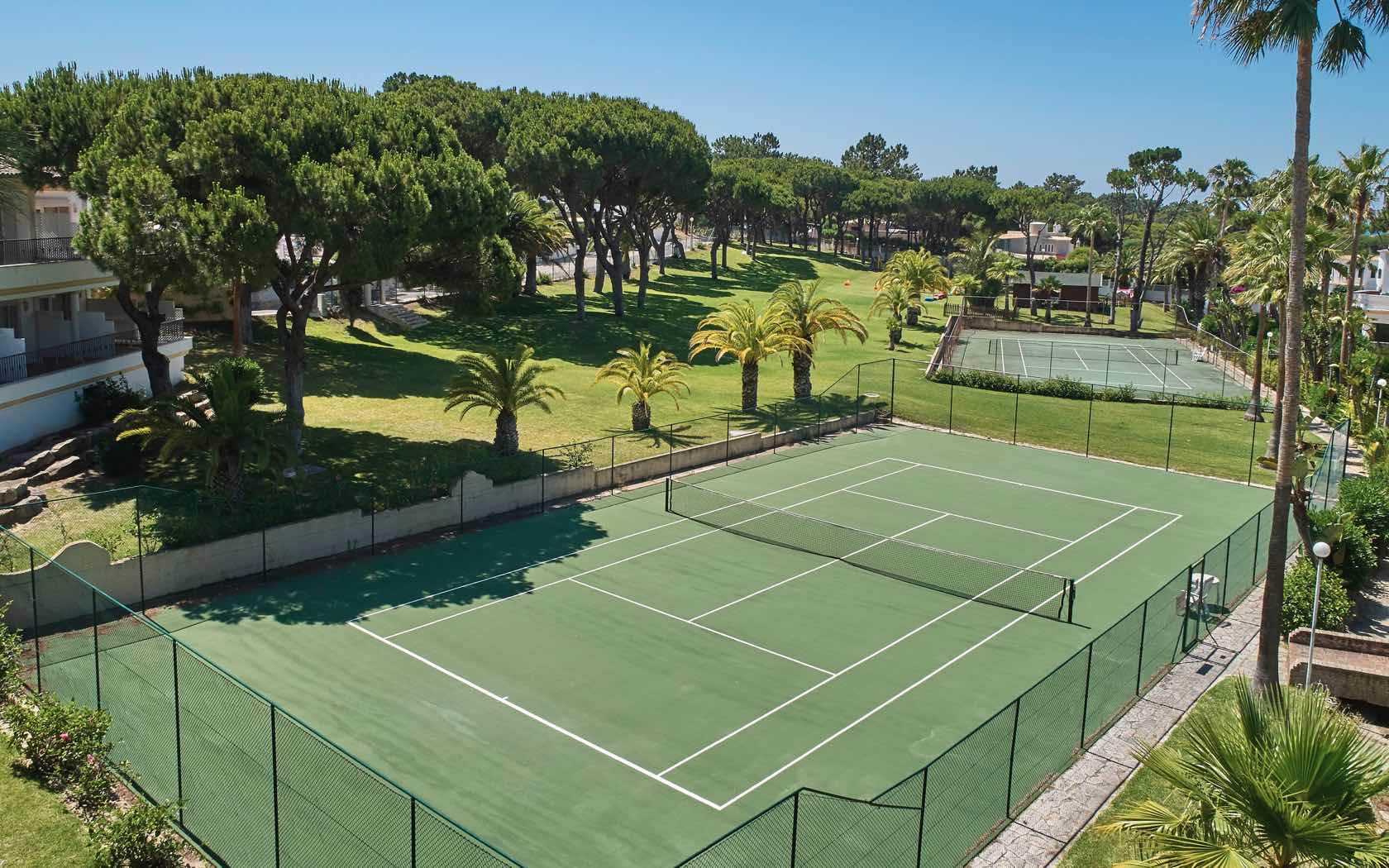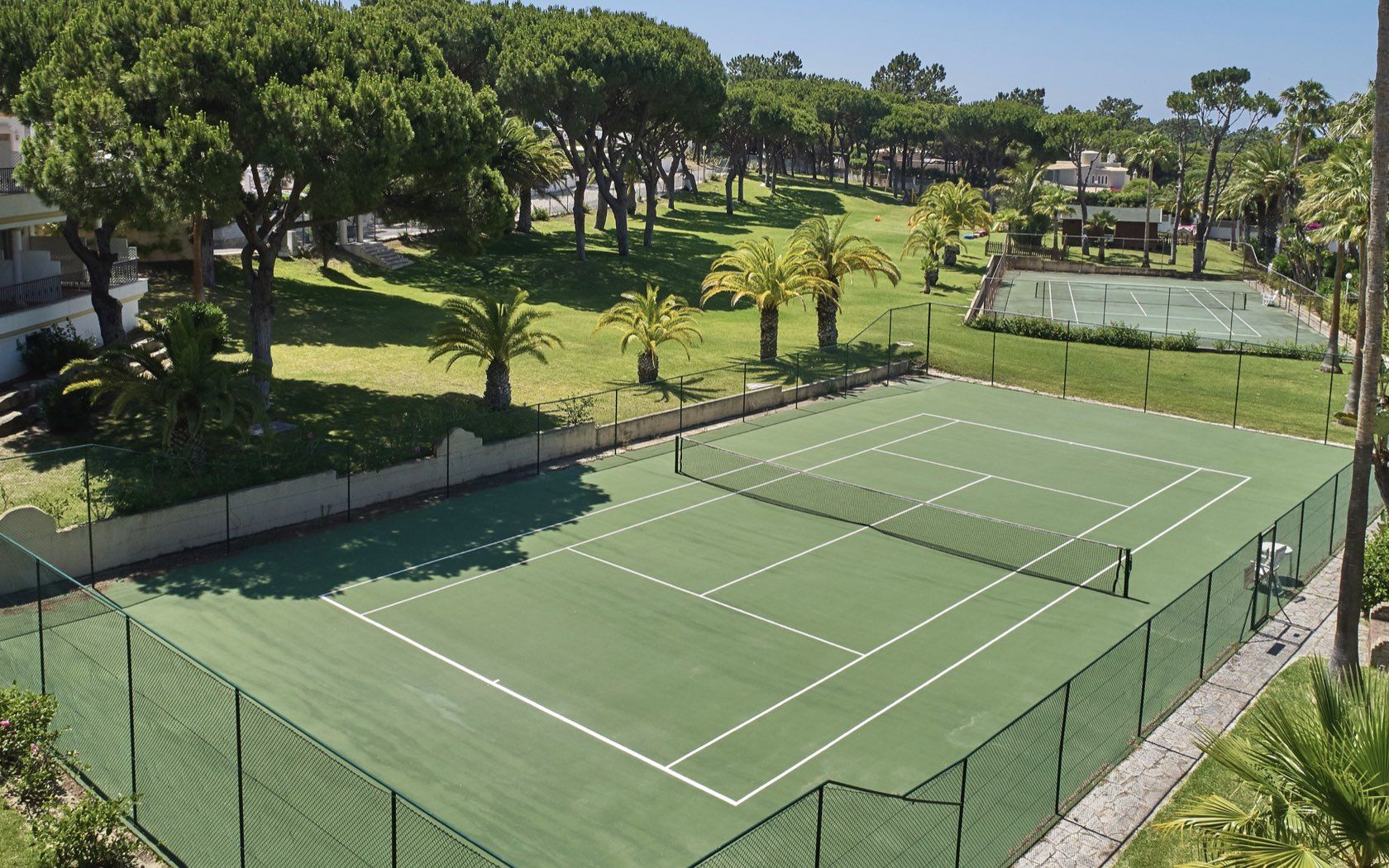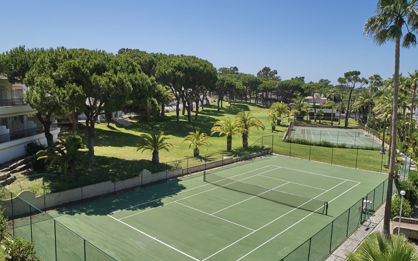 Two tennis courts located in the middle of the resort among lush greenery of the Garrão Gardens